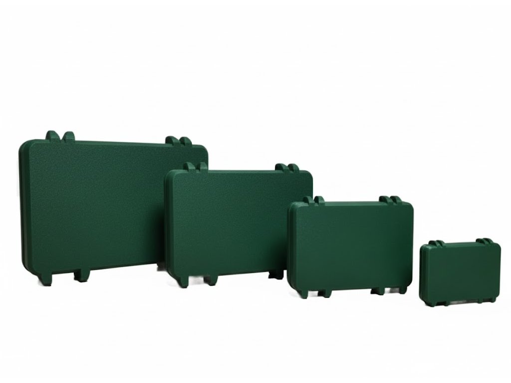 Praktický servisní kufřík — pevný, skladný a ihned použitelný, bez loga, zelený.